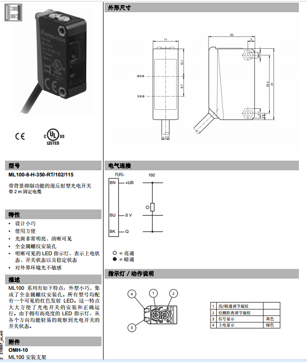 ML100-8-H-350-RT/102/115,漫反射型傳感器