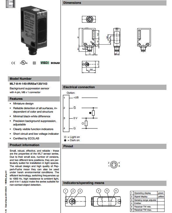 ML7-8-H-140-IR/65a/120/143,漫反射型傳感器