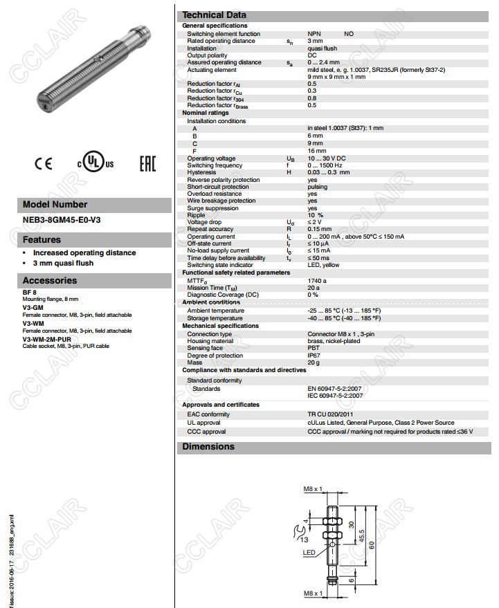 NEB3-8GM45-E0-V3,電感式接近開(kāi)關(guān)
