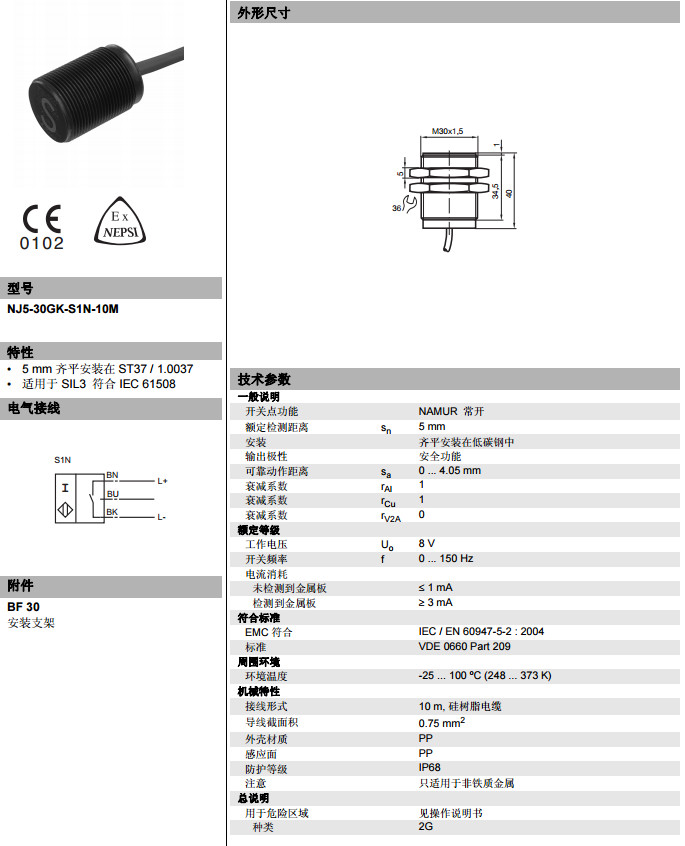 NJ5-30GK-S1N-10M電感式接近開關(guān)