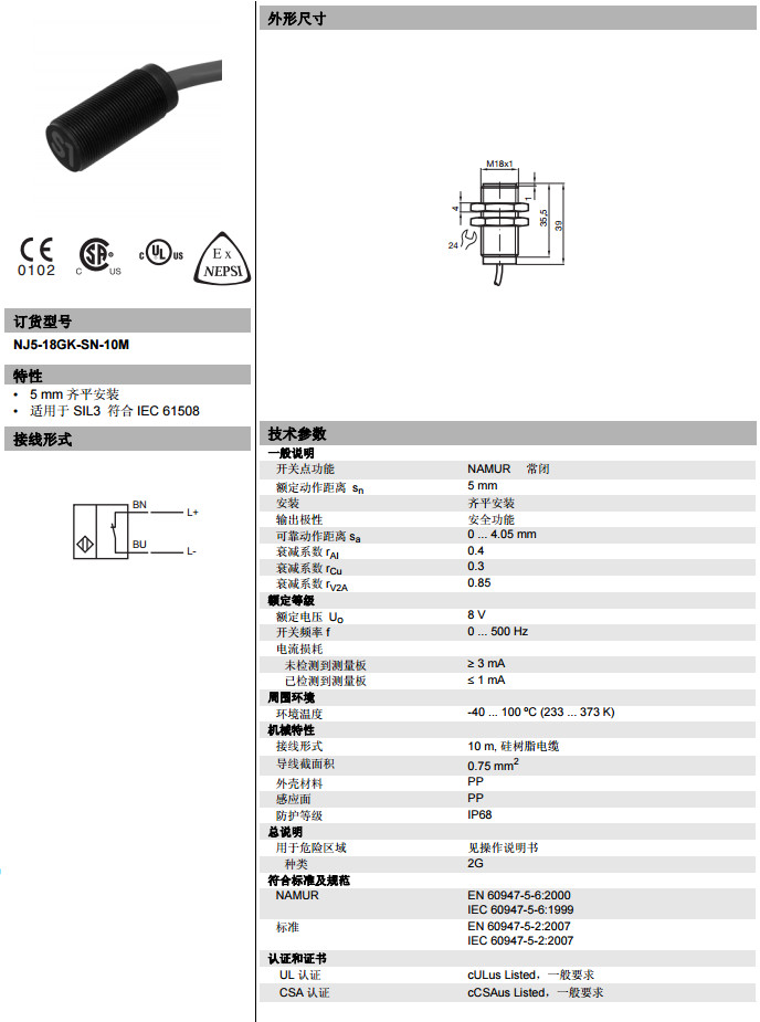 NJ5-18GK-SN-10M電感式接近開關(guān)
