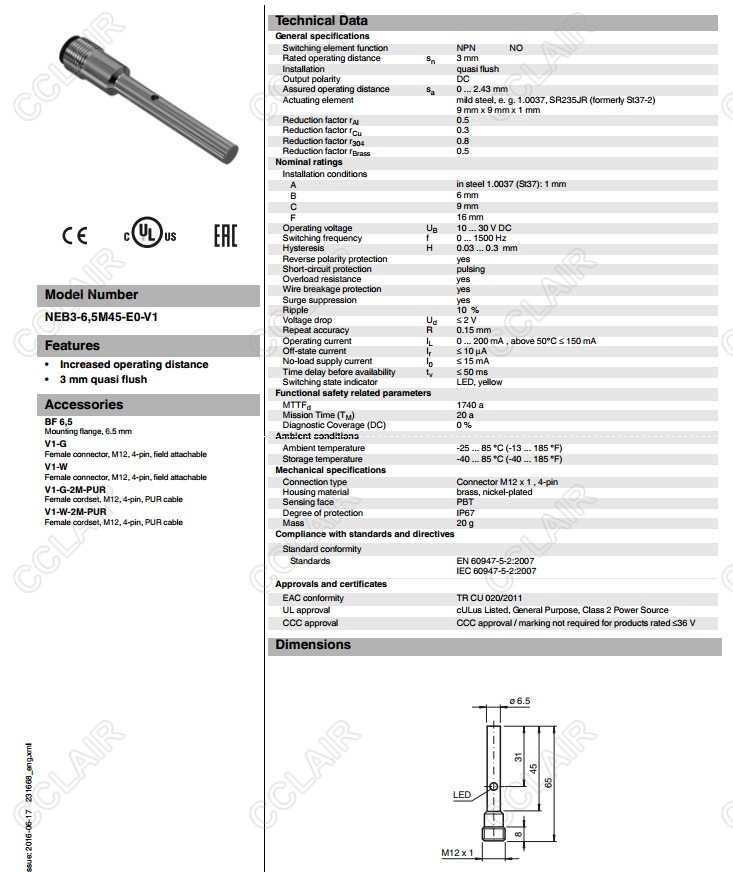 NEB3-6,5M45-E0-V1,電感式接近開(kāi)關(guān)