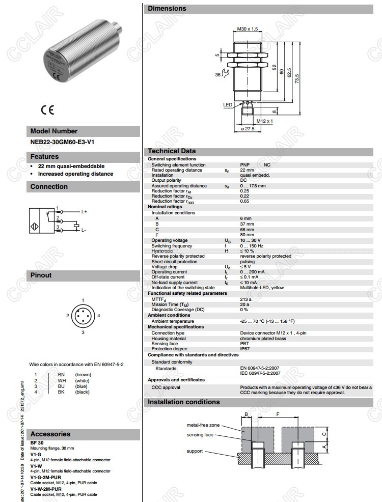 NEB22-30GM60-E3-V1,電感式接近開關