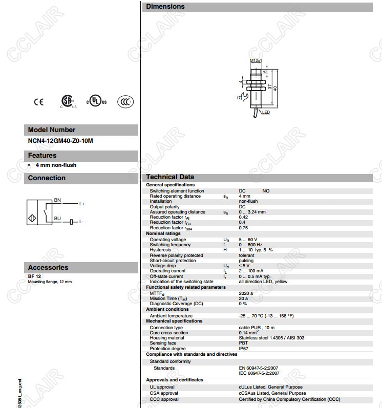NCN4-12GM40-Z0-10M,電感式接近開關(guān)