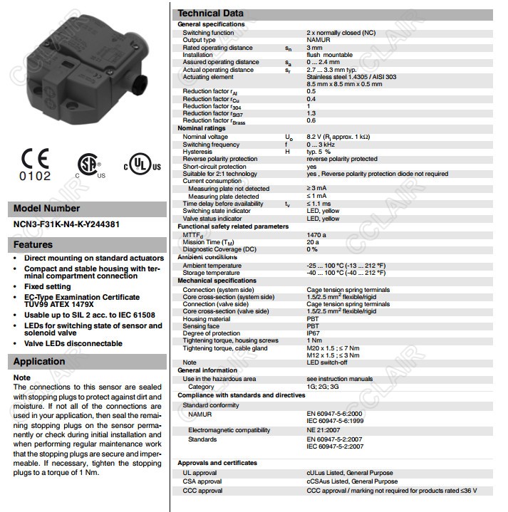 NCN3-F31K-N4-K-Y244381,NCN3-F31K-N5-K