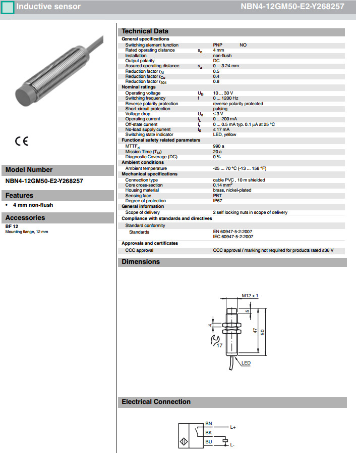 NBN4-12GM50-E2-Y268257,NBN4-12GM50-E2-Y292473,NBN4-12GM50-E2-Y292474