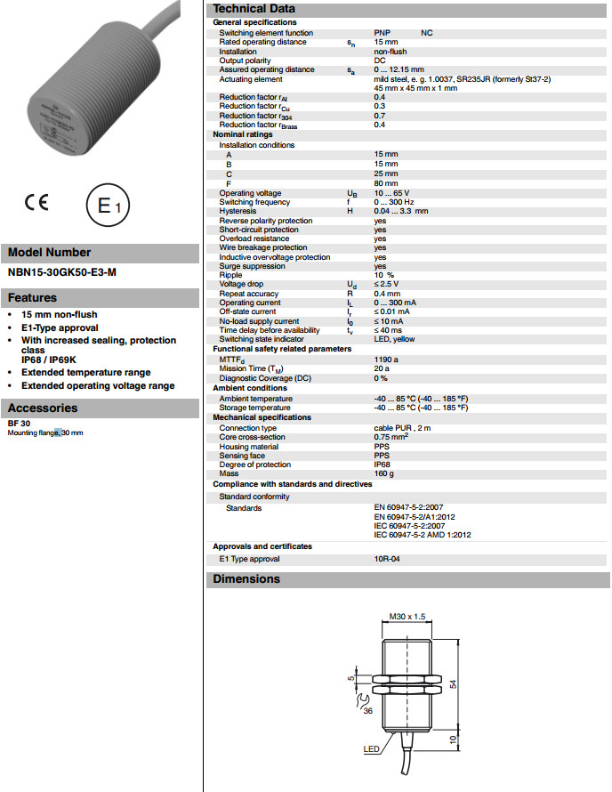 NBN15-30GK50-E3-M電感式接近開關(guān)