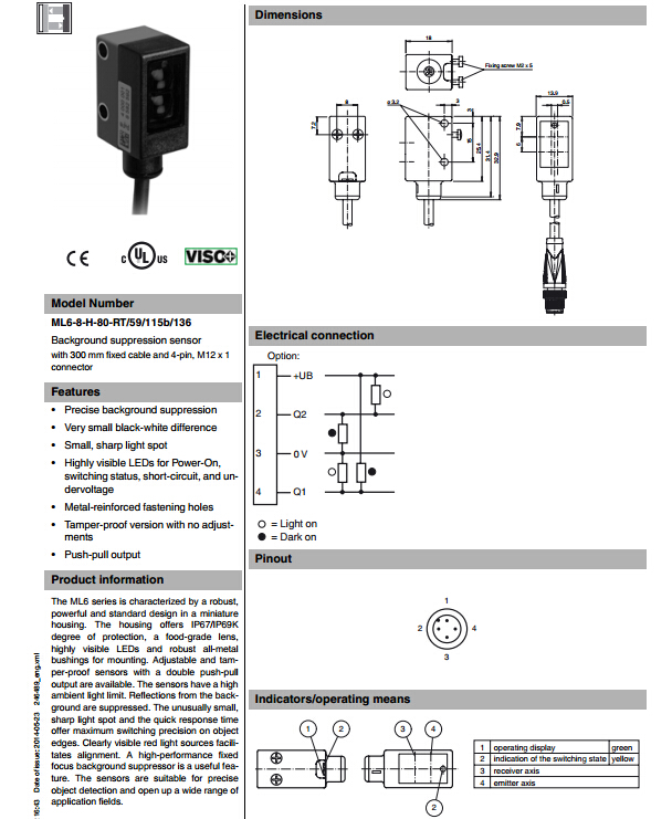 ML6-8-H-80-RT/59/115b/136,漫反射型傳感器