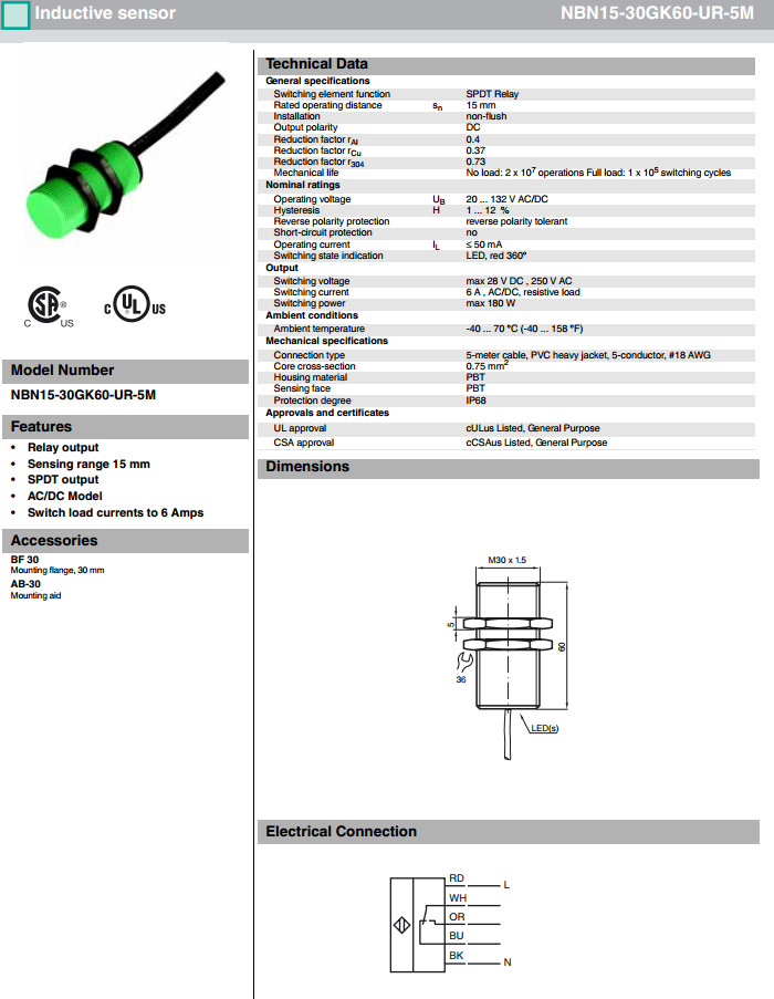 NBN15-30GK60-UR-1M,NBN15-30GK60-UR-3M,NBN15-30GK60-UR-5M