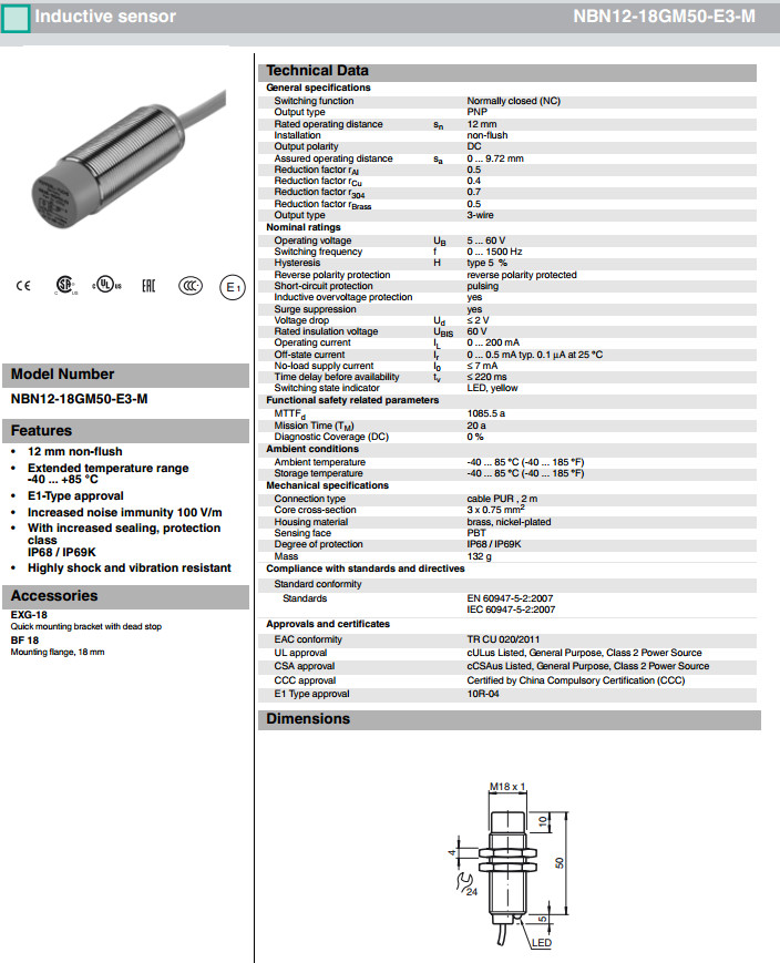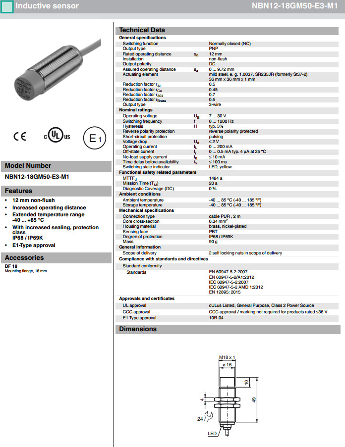 NBN12-18GM50-E3-M,NBN12-18GM50-E3-M1