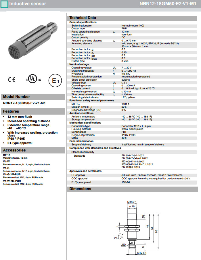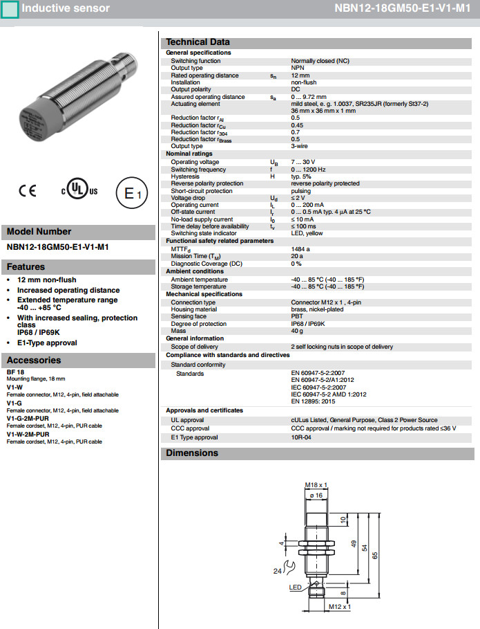 NBN12-18GM50-E0-V1-M,NBN12-18GM50-E0-V1-M1,NBN12-18GM50-E1-V1-M,NBN12-18GM50-E1-V1-M1,NBN12-18GM50-E