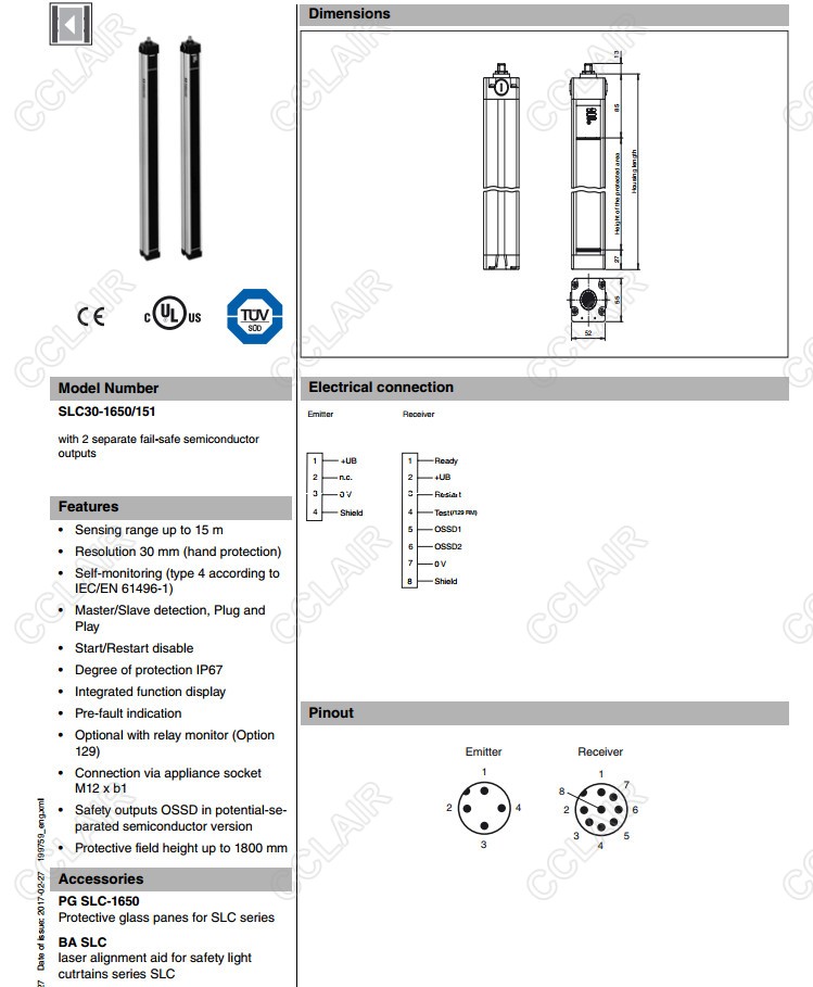 SLC30-1650/151,SLC30-1800/129/151,SLC30-1800/151,SLC30-300/129,安全光柵