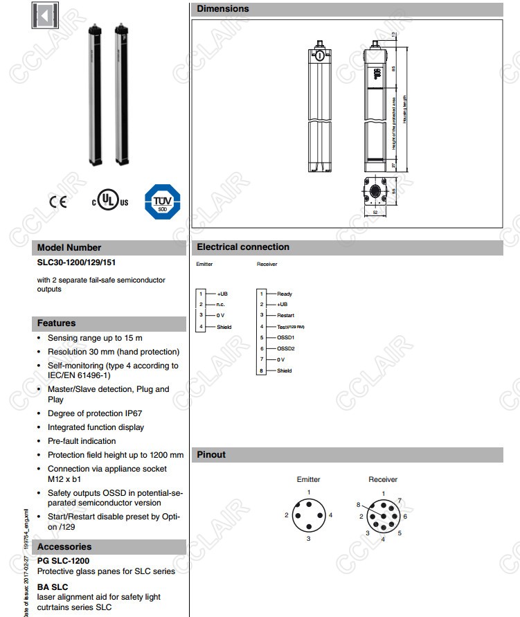 SLC14-900/151,SLC30-1050/129/151,SLC30-1050/151,SLC30-1200/129/151,安全光柵