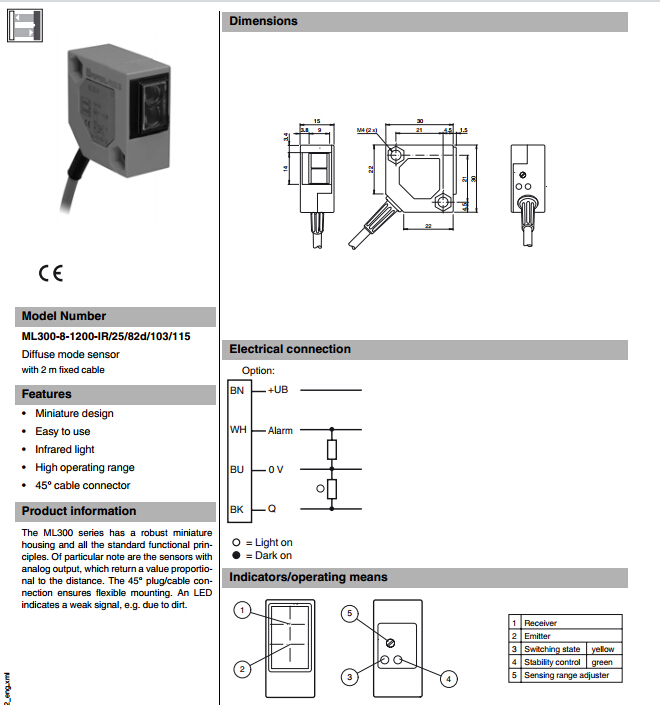 ML300-8-1200-IR/25/82d/103/115,漫反射型傳感器