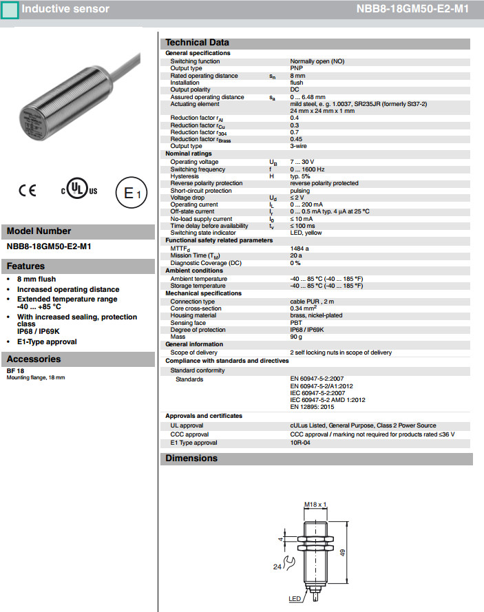 NBB8-18GM50-E2-M1,NBB8-18GM50-E3-M1