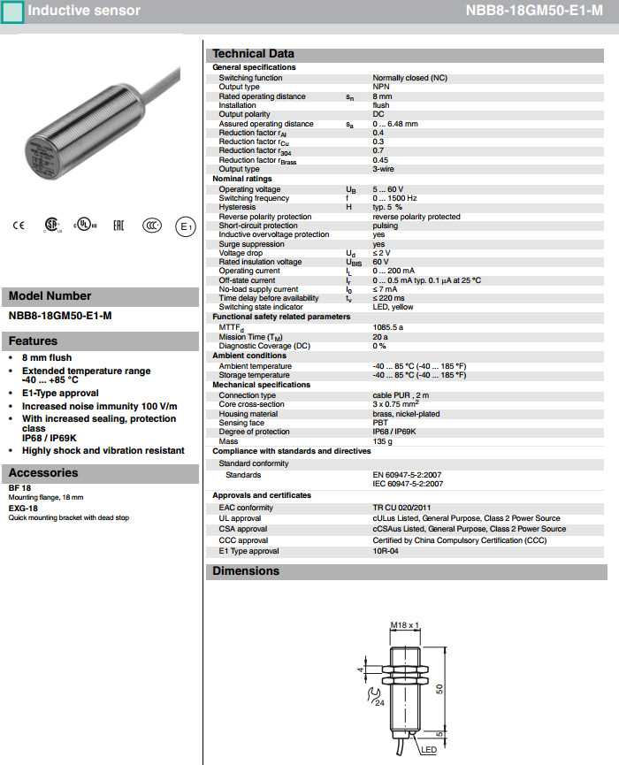 NBB8-18GM50-E1-M,NBB8-18GM50-E1-M1