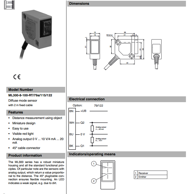 ML300-8-100-RT/79a/115/122,漫反射型傳感器