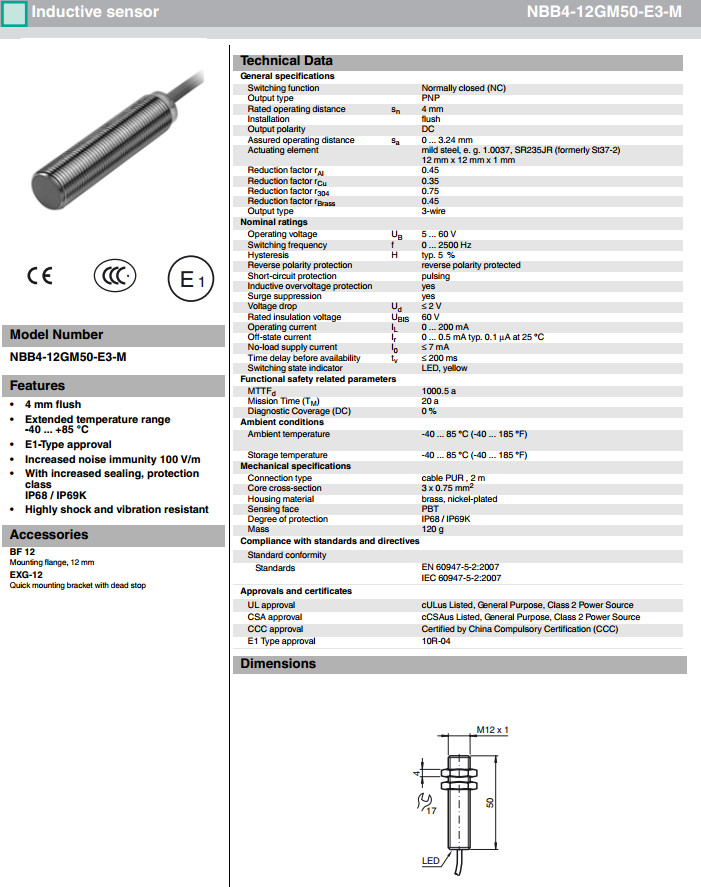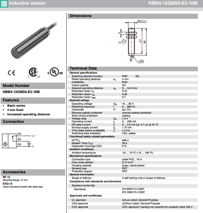 NBB4-12GM50-E3-10M,NBB4-12GM50-E3-M