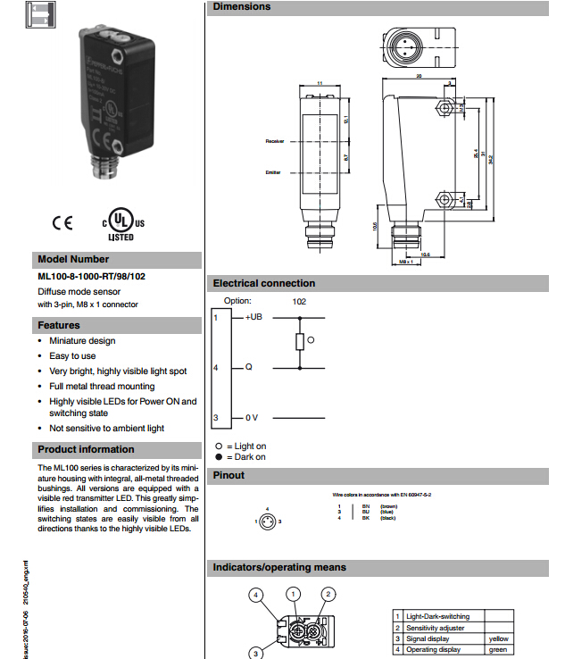 ML100-8-1000-RT/98/102,漫反射型傳感器