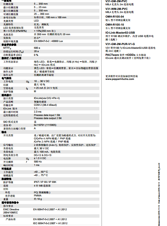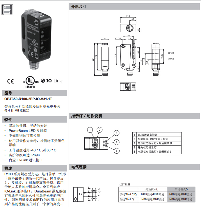 OBT350-R100-2EP-IO-V31-1T,漫反射型傳感器
