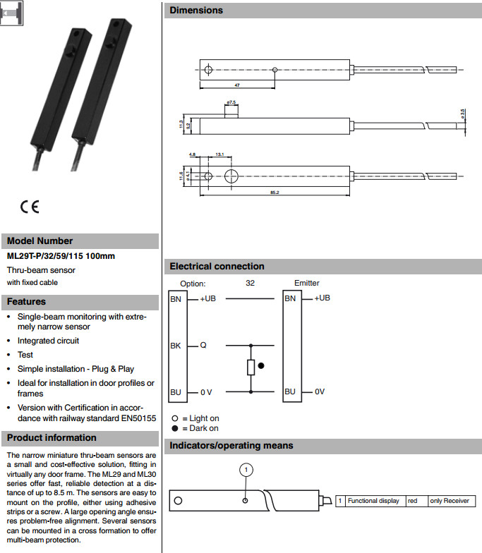 ML29T-P/32/59/115100mm門禁系統(tǒng)的傳感器