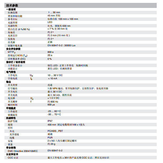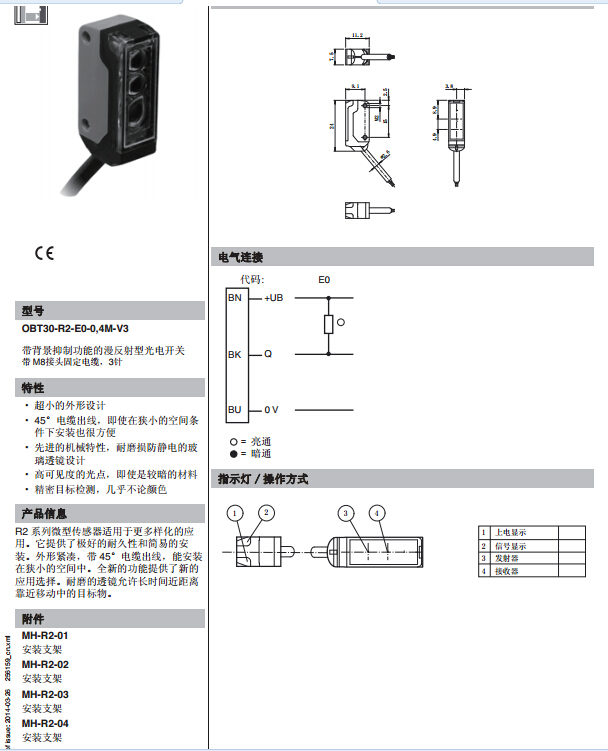 OBT30-R2-E0-0,4M-V3,漫反射型傳感器
