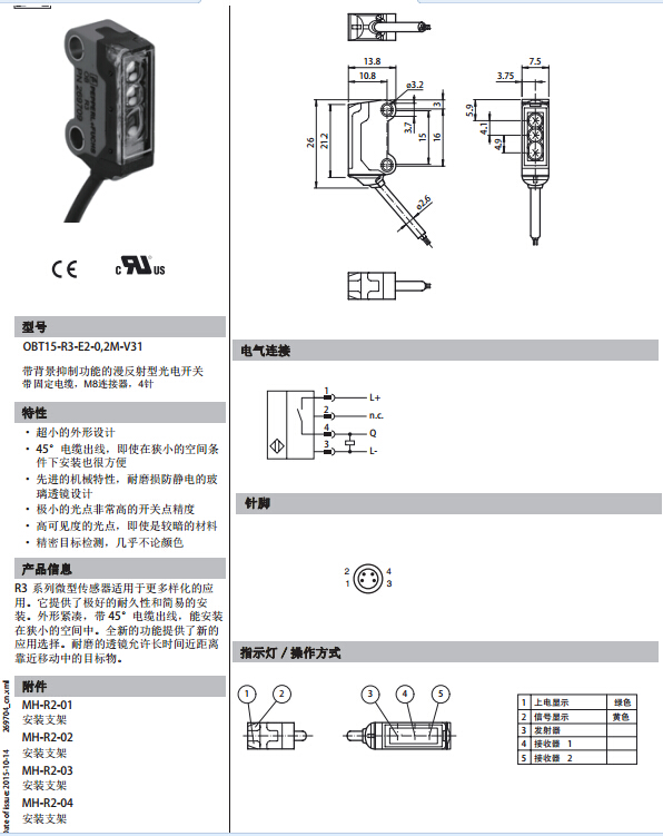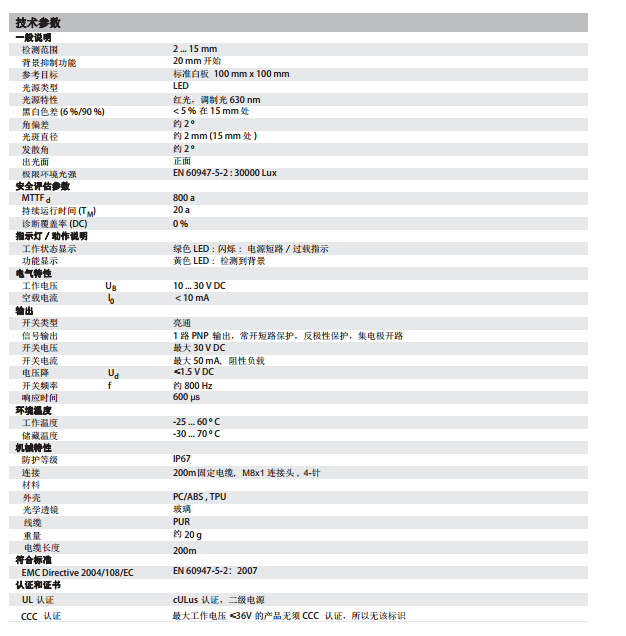 OBT15-R3-E2-0,2M-V31,漫反射型傳感器