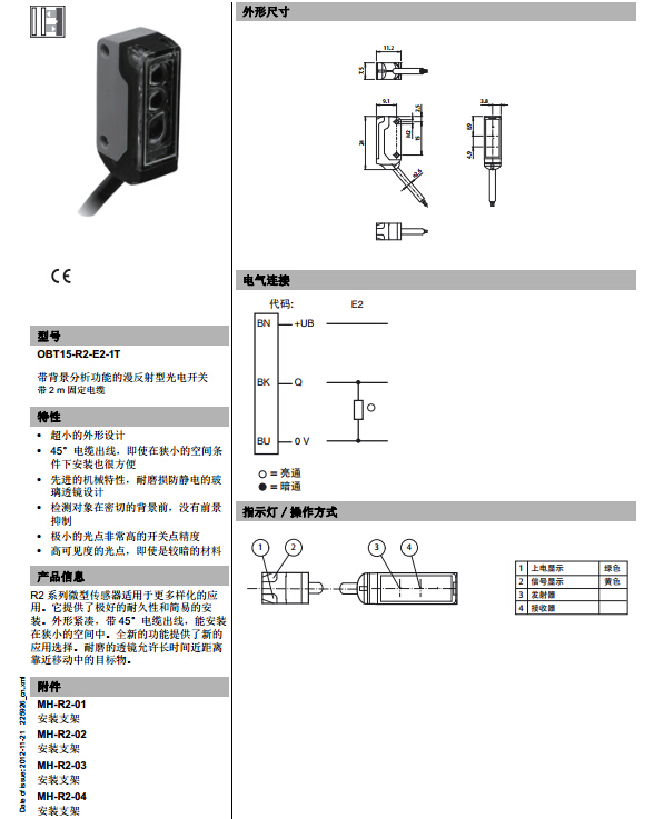 OBT15-R2-E2-1T,漫反射型傳感器