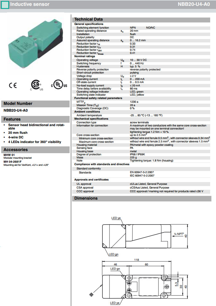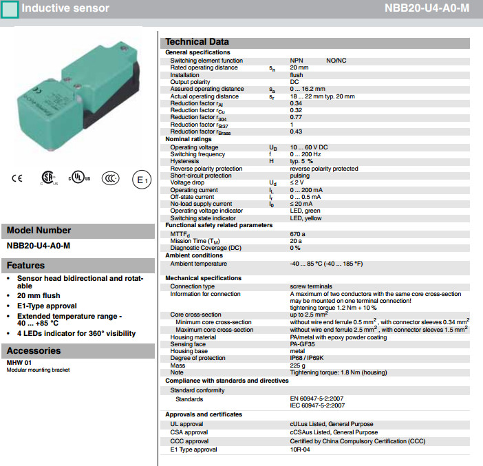 NBB20-U4-A0,NBB20-U4-A0-M,NBB20-U4-A0-T