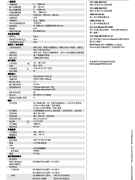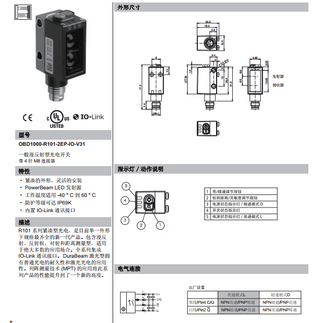 OBD1000-R101-2EP-IO-V31,漫反射型傳感器