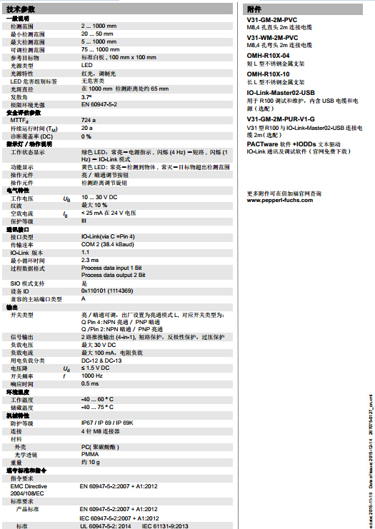 OBD1000-R100-2EP-IO-V31,漫反射型傳感器