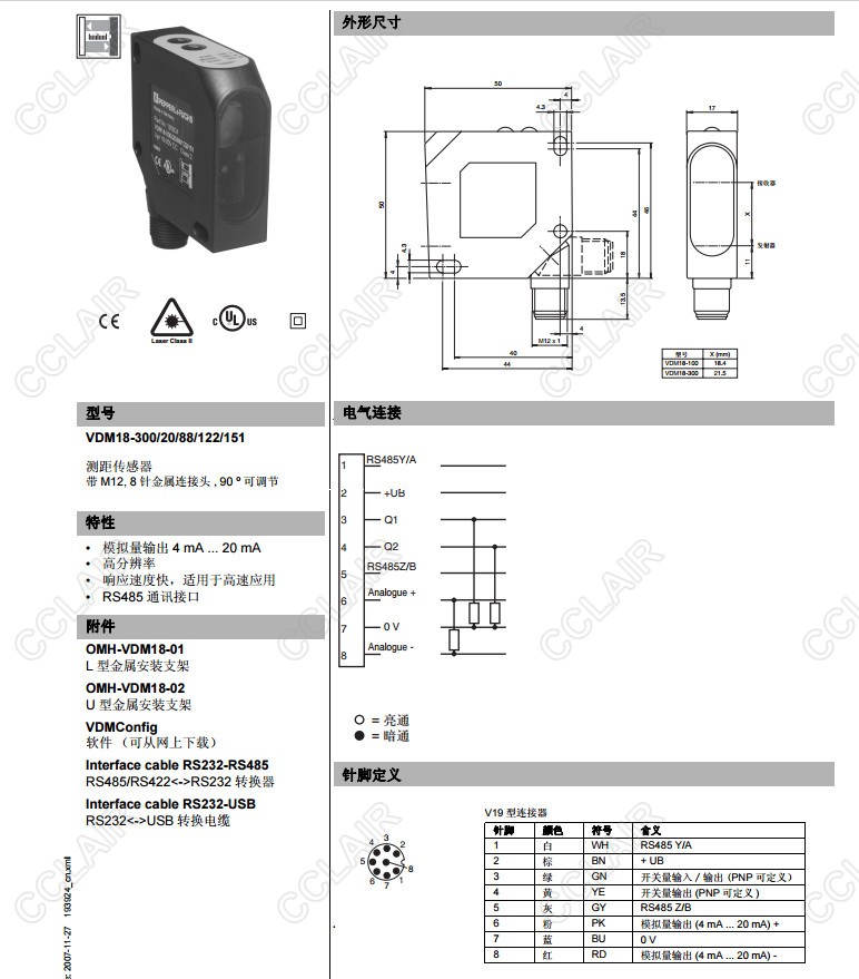VDM18-300/20/88/122/151,VDM18-300/21/122/151,測距傳感器