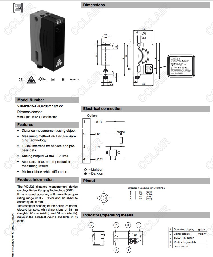 VDM28-15-L-IO/73c/110/122,距離傳感器
