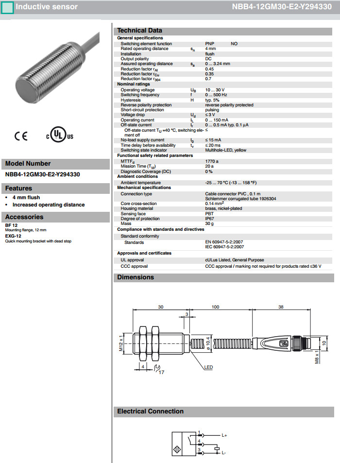 NBB4-12GM30-E2-Y291183,NBB4-12GM30-E2-Y294330