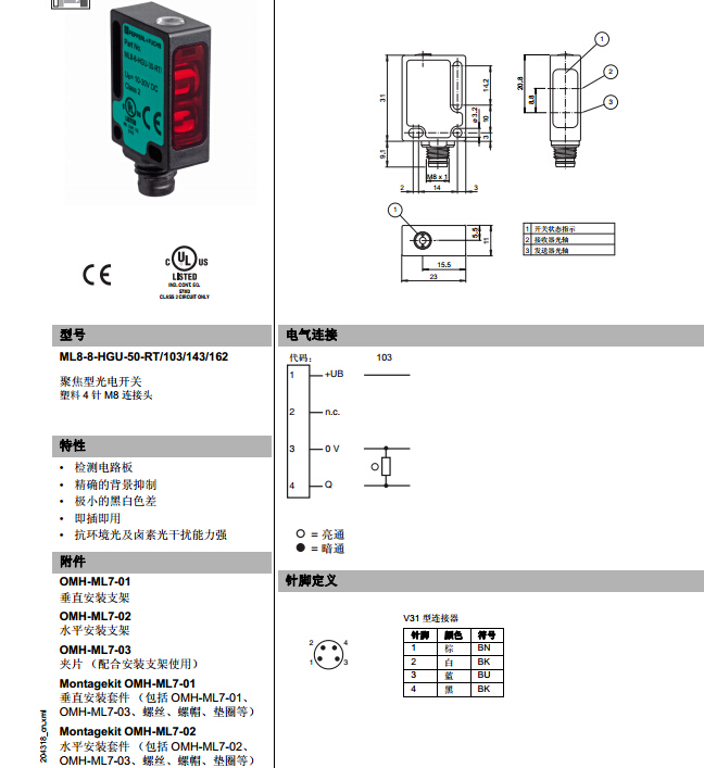 ML8-8-HGU-50-RT/103/143/162,漫反射型傳感器