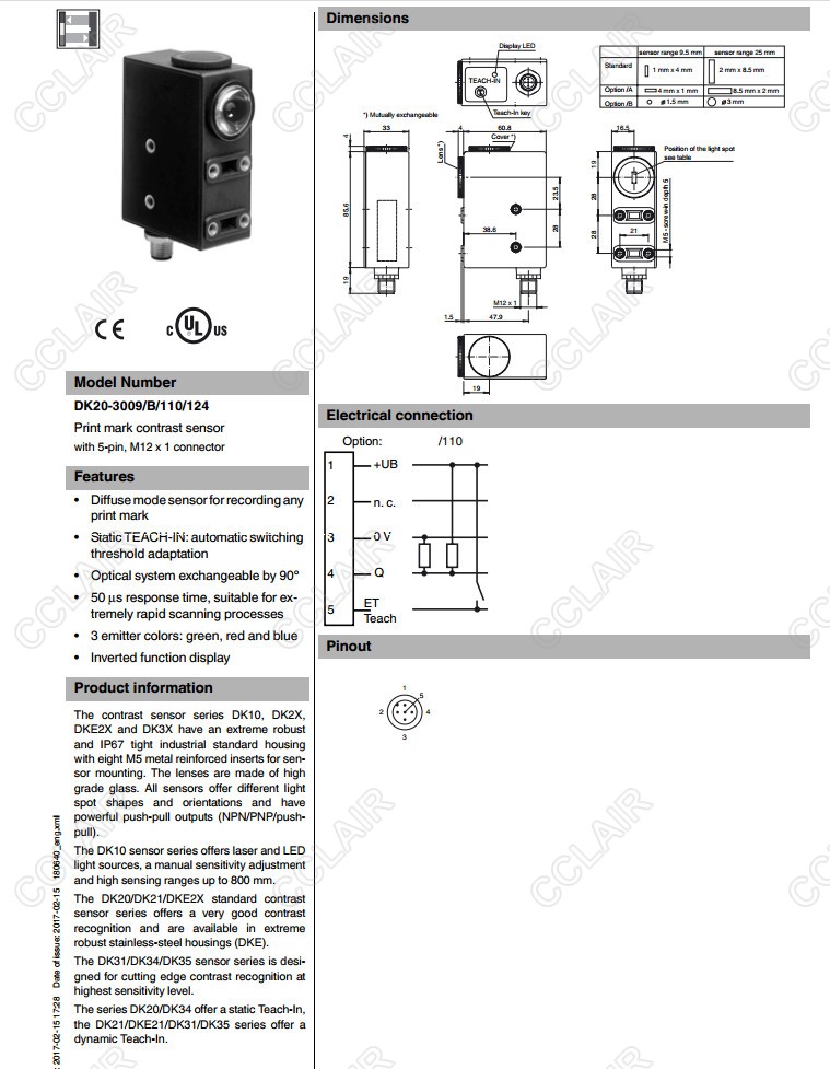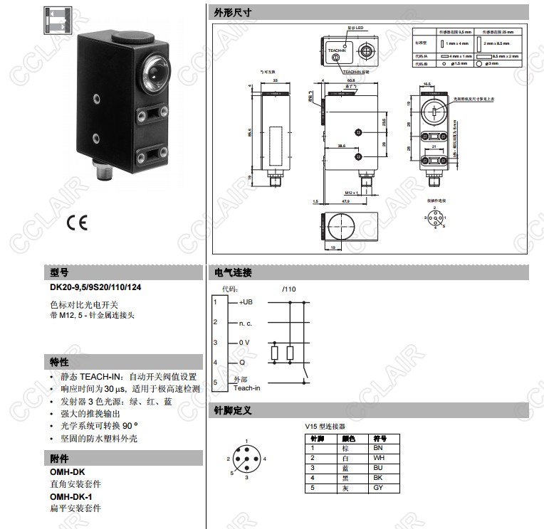 DK20-3009/B/110/124,DK20-9,5/9S20/110/124,DK20-9,5/B/79B/110/124,色標(biāo)對比度傳感器