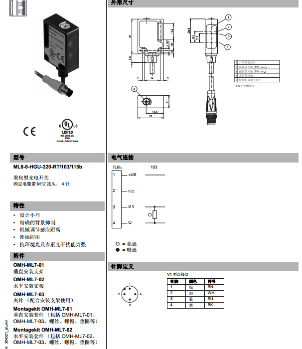 ML8-8-HGU-220-RT/103/115b,漫反射型傳感器