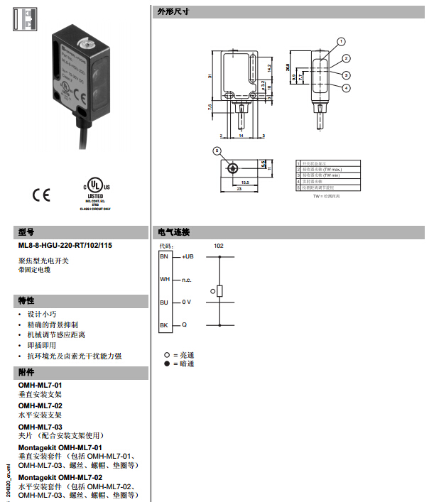 ML8-8-HGU-220-RT/102/115,漫反射型傳感器