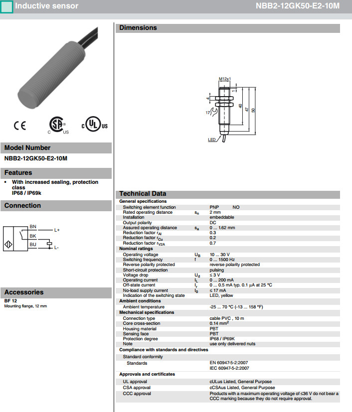NBB2-12GK50-E0,NBB2-12GK50-E2-10M