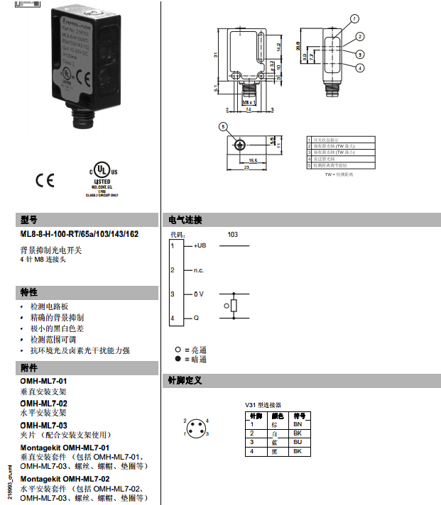 ML8-8-H-100-RT/65a/103/143/162,漫反射型傳感器