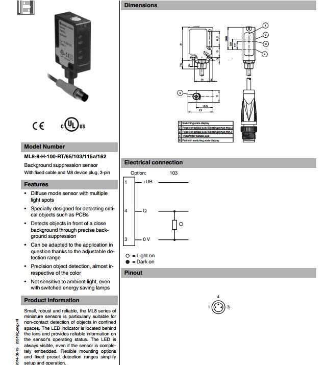 ML8-8-H-100-RT/65/103/115a/162,漫反射型傳感器