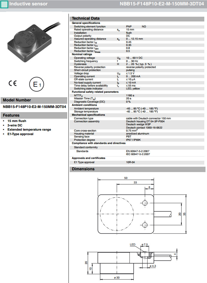 NBB15-F148P10-E2-M,NBB15-F148P10-E2-M-150MM-3DT04