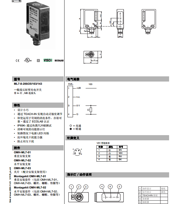 ML7-8-200/25/103/143,漫反射型傳感器