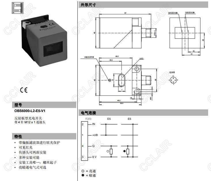 OBS6000-L2-E5-V1,反射板型傳感器