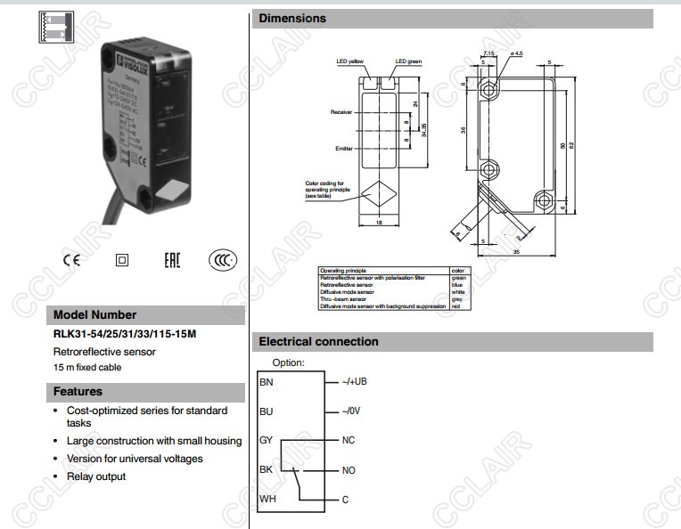 RLK31-54/25/31/115-SET2,RLK31-54/25/31/33/115-15M,反射板型傳感器