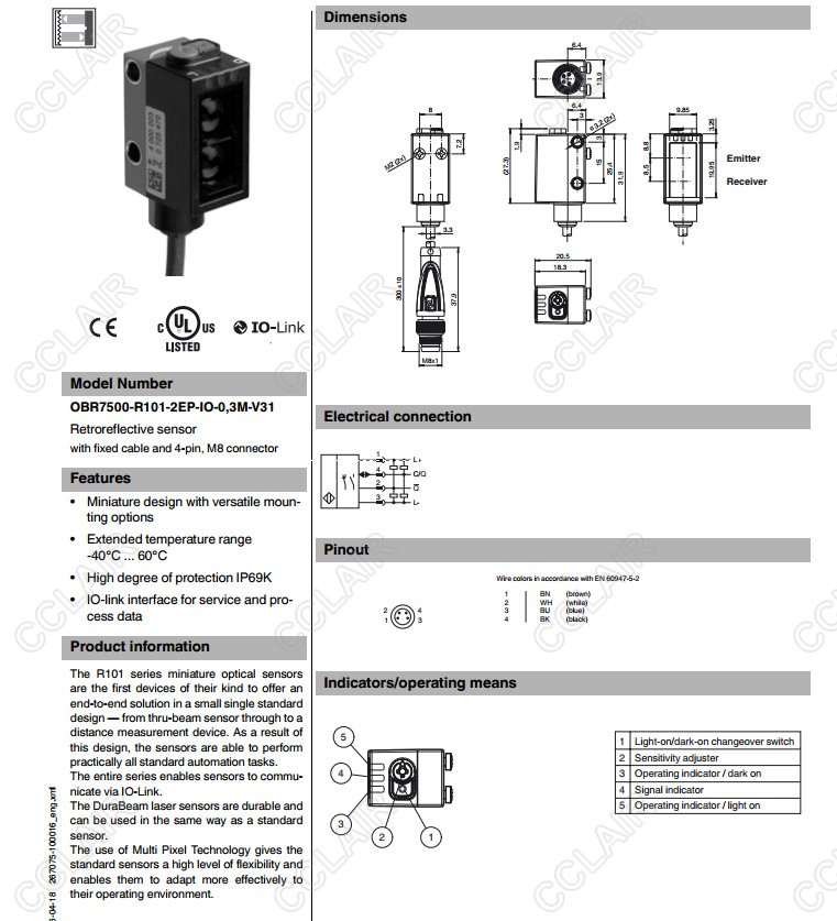 OBR7500-R101-2EP-IO-0,3M-V1,OBR7500-R101-2EP-IO-0,3M-V31,反射板型傳感器