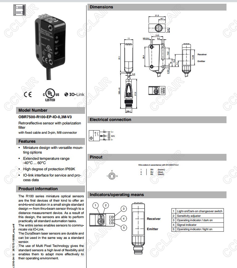 OBR7500-R100-2EP-IO-0,3M-V1,OBR7500-R100-2EP-IO-0,3M-V31,OBR7500-R100-EP-IO-0,3M-V3,反射板型傳感器