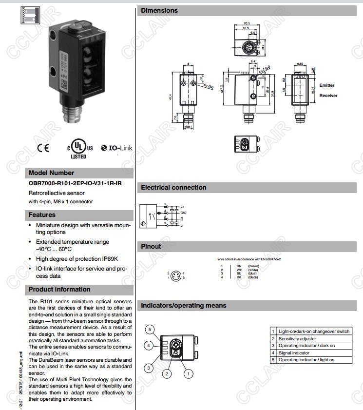 OBR7000-R101-2EP-IO-V31-1R-IR,反射板型光電開關(guān)