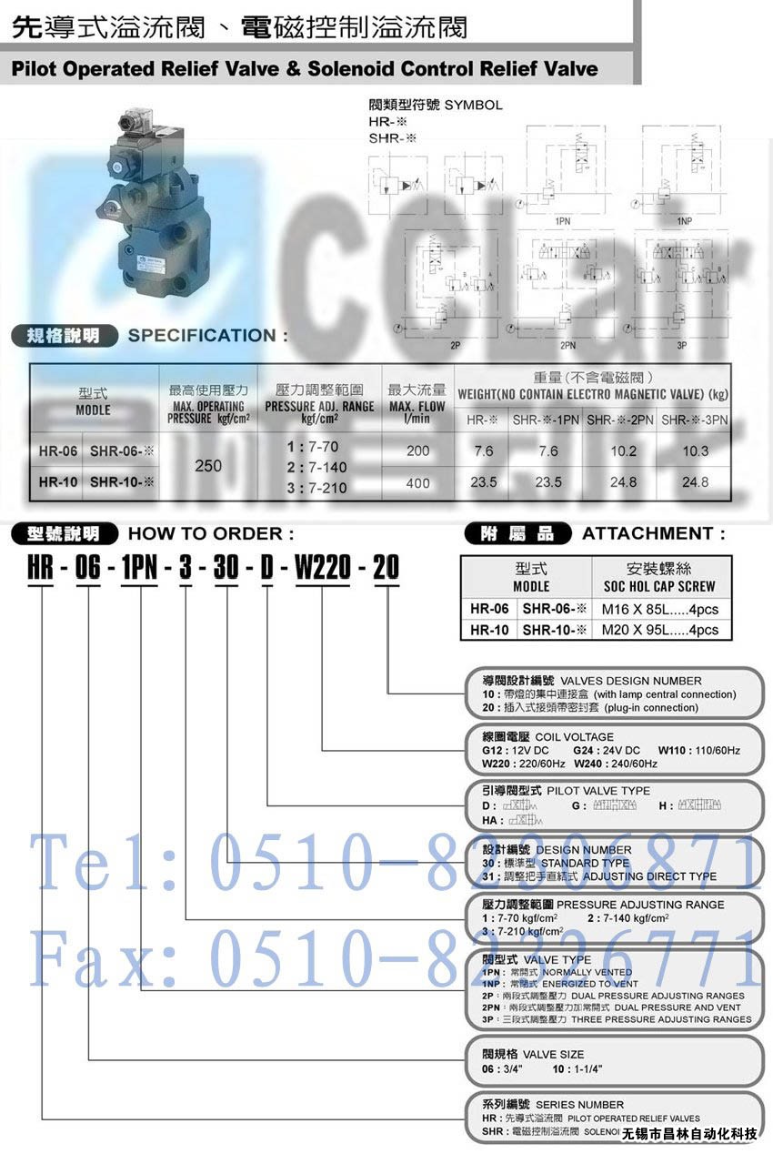 SHR-06-2PN-1-30-HA-W220-10, 電磁控制溢流閥