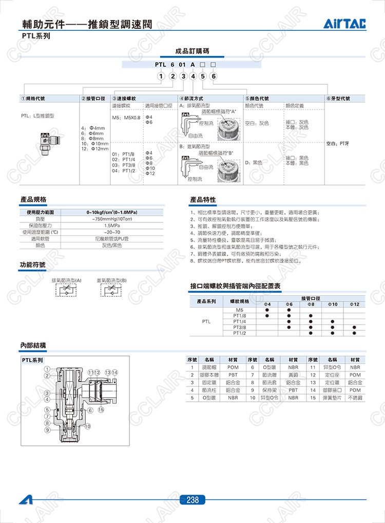 PTL4M5A,PTL4M5B,PTL401A,PTL401B,PTL6M5A,PTL6M5B,AIRTAC調(diào)速閥